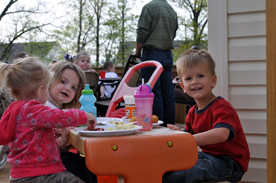 I had to post this pic of Cam b/c she's somewhat reserved in big groups, but when the little kids were sitting at this table I caught her making this silly face across the table at Danny!